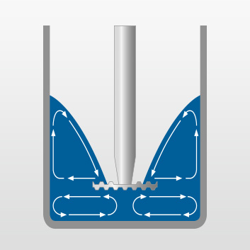 The application of a disperser for high‒speed dispersion differs considerably to stirring and mixing where low speeds and special tools are generally used. A high‒speed disperser is highly efficient and in many cases all that is needed to achieve the required dispersion result. If however, a finer dispersion result is desired, dispersion becomes a two step process, with the disperser used for pre‒dispersion, followed by further milling in a bead or basket mill.